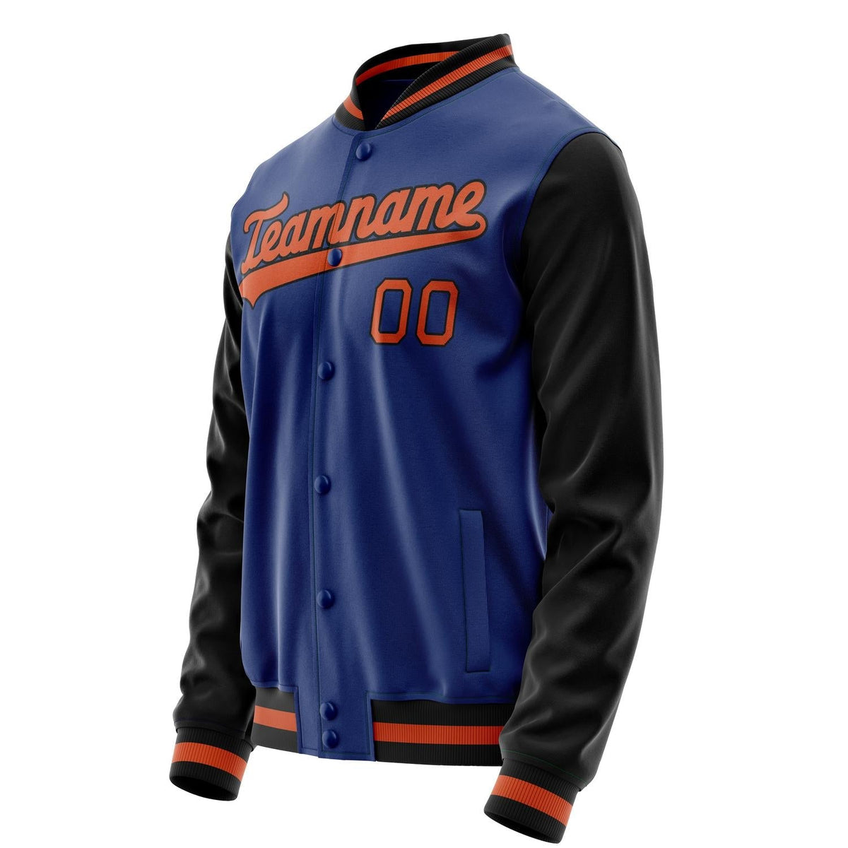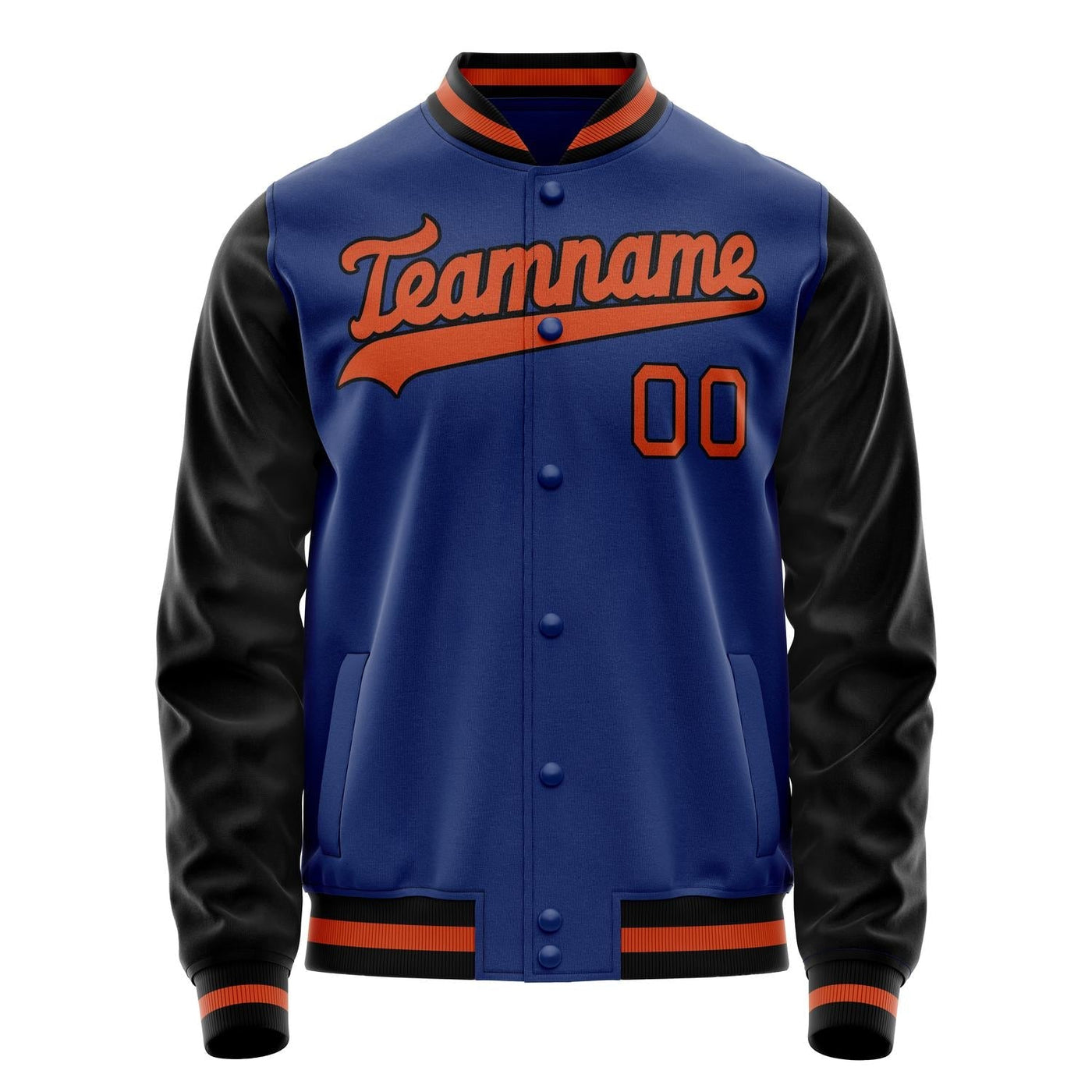 Custom Royal Black Solid Color Varsity Letterman Jacket