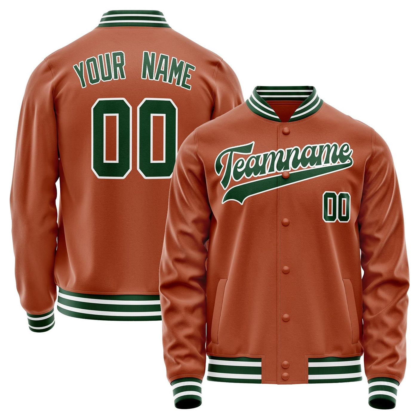 Custom Texas-Orange Kelly-Green Solid Color Varsity Letterman Jacket
