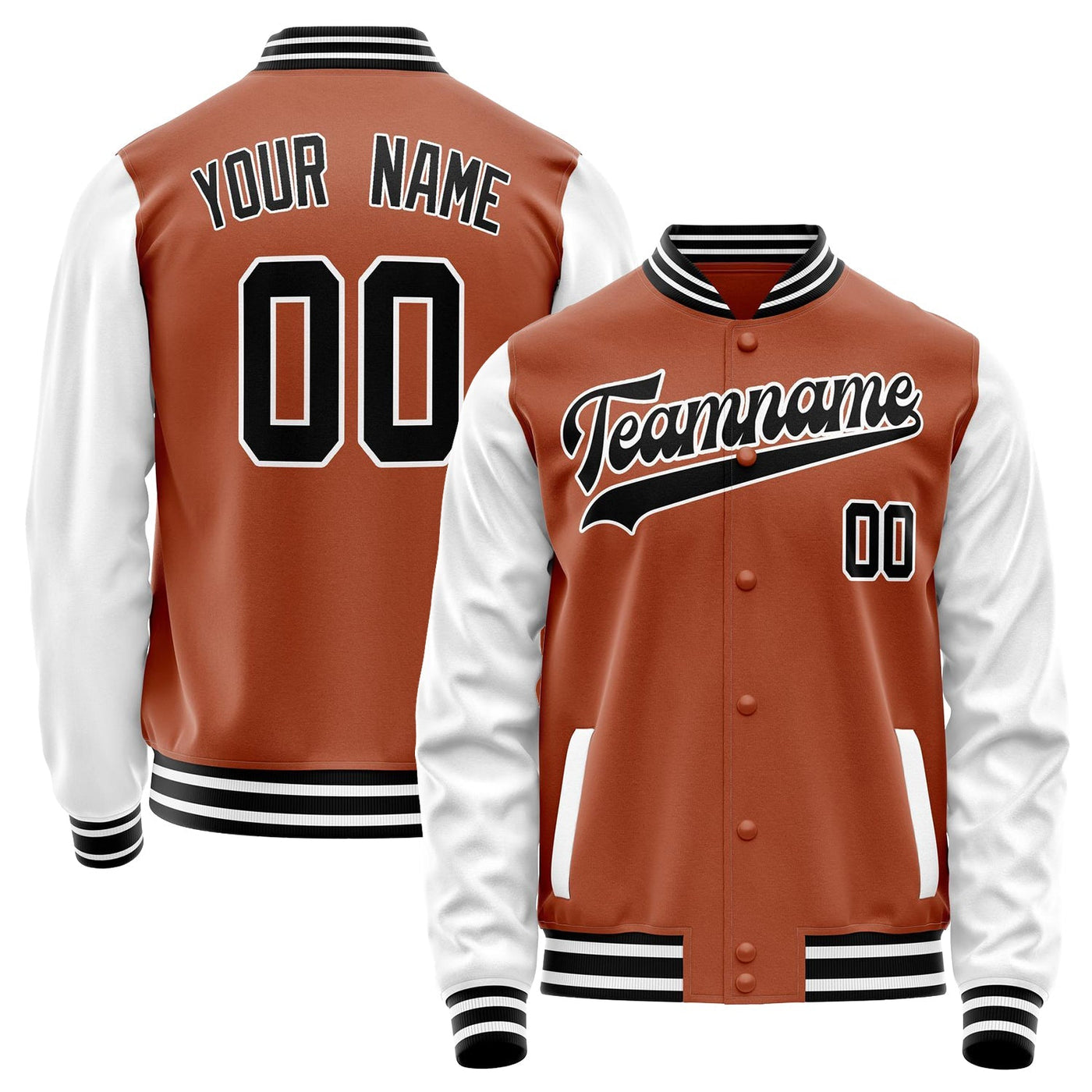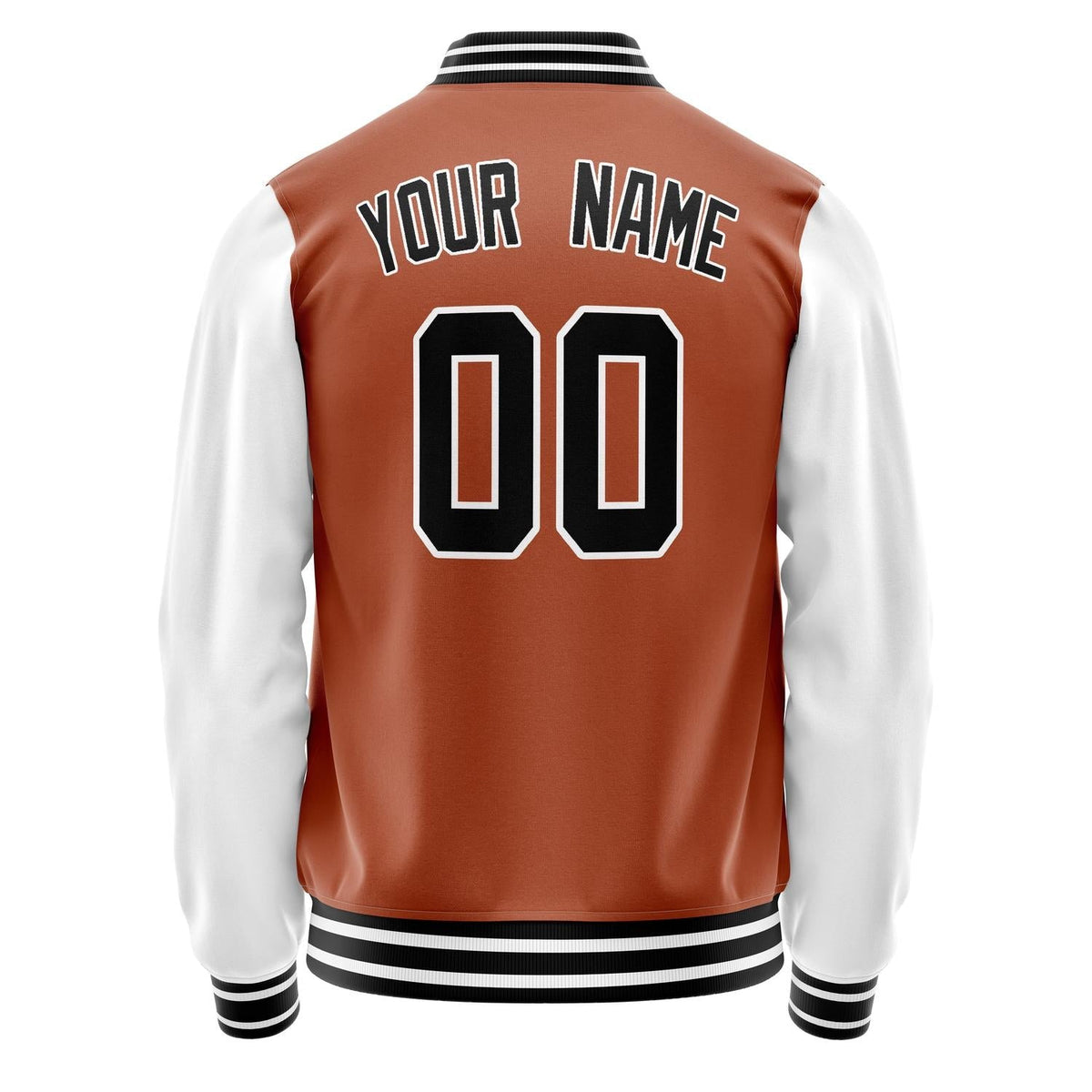 Custom Texas-Orange White Solid Color Varsity Letterman Jacket