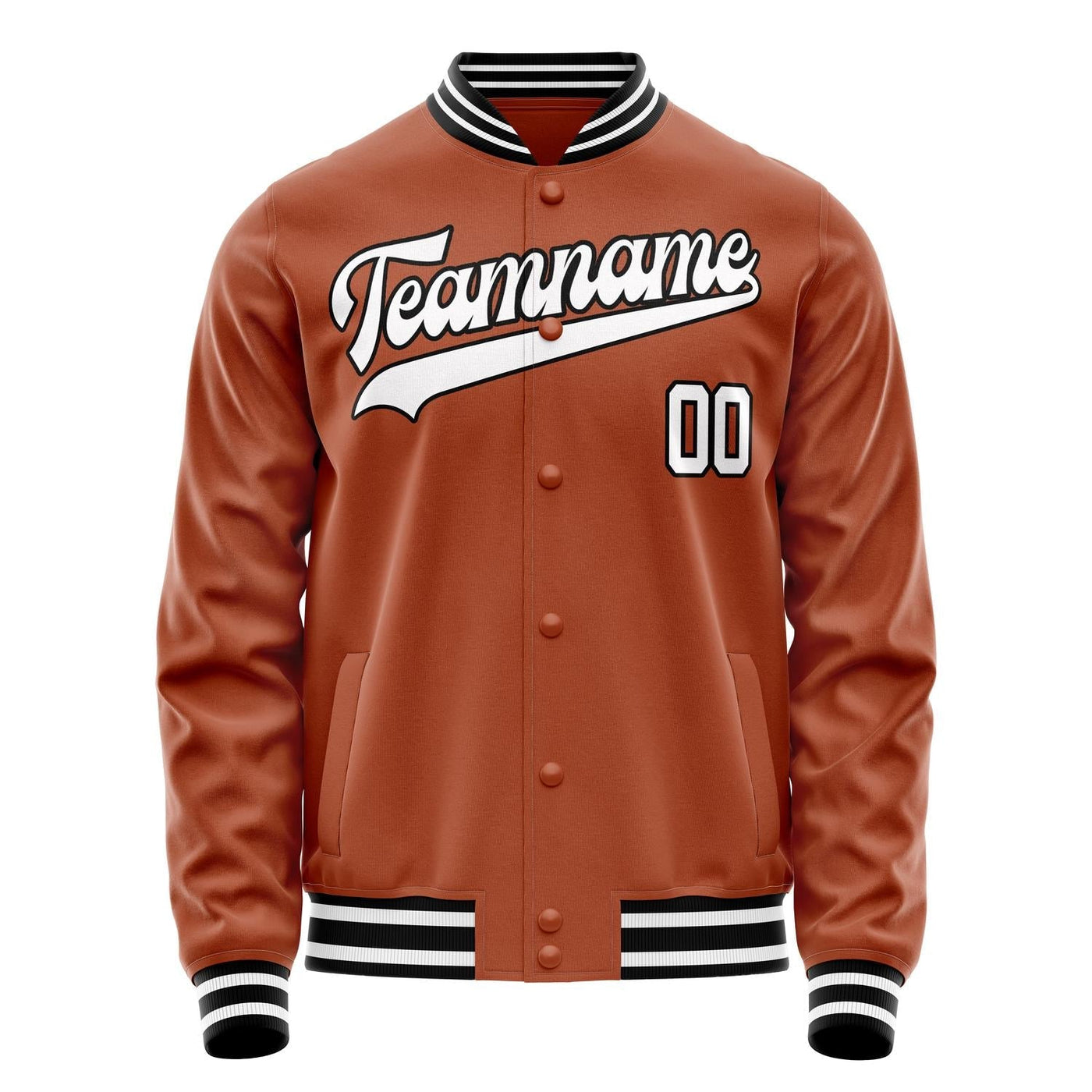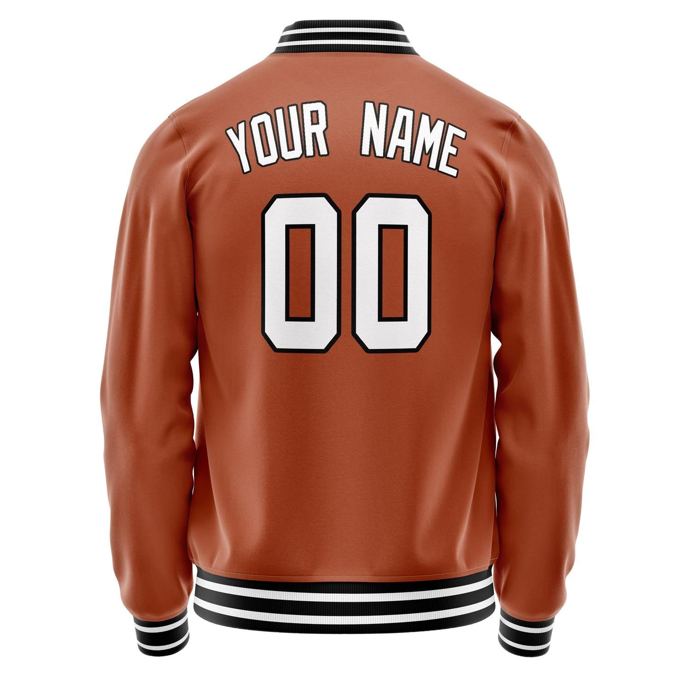 Custom Texas-Orange White Solid Color Varsity Letterman Jacket